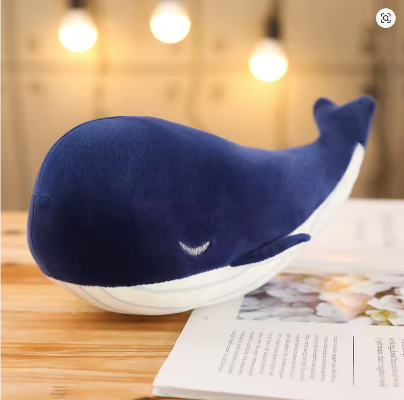 Pelúcia de baleia azul super macia e fofa, com 25 cm de comprimento – perfeita para abraçar e decorar! Feita com material antialérgico e acabamento de alta qualidade, é ideal para crianças e fãs do mundo marinho. Um companheiro divertido e seguro para a hora do sono ou para brincar com imaginação!